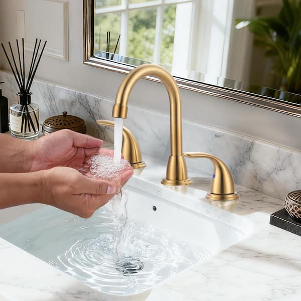 8 in. Widespread Double Handle Bathroom Faucet with Pop-Up Drain Assembly in Brushed Gold