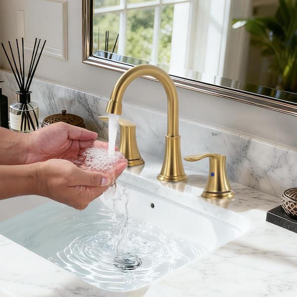 8 in. Widespread Double Handle Bathroom Faucet with Pop-up Drain in Brushed Gold