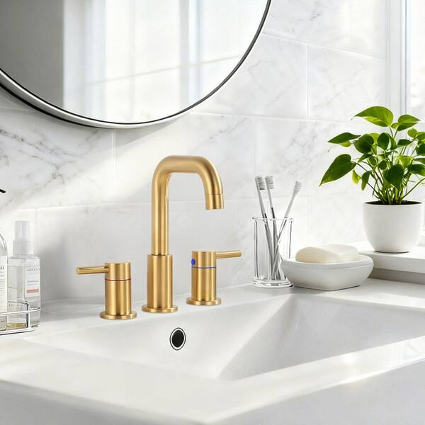 8 in. Widespread Double Handle High-Arc Bathroom Faucet with Pop-up Drain in Brushed Gold