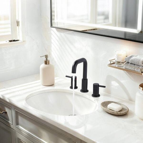 8 in. Widespread Double Handle High-Arc Bathroom Faucet with Pop-up Drain in Matte Black