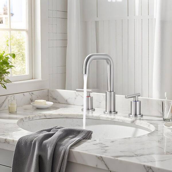 8 in. Widespread Double-Handle High-Arc Bathroom Sink Faucet with Drain Kit in Brushed Nickel