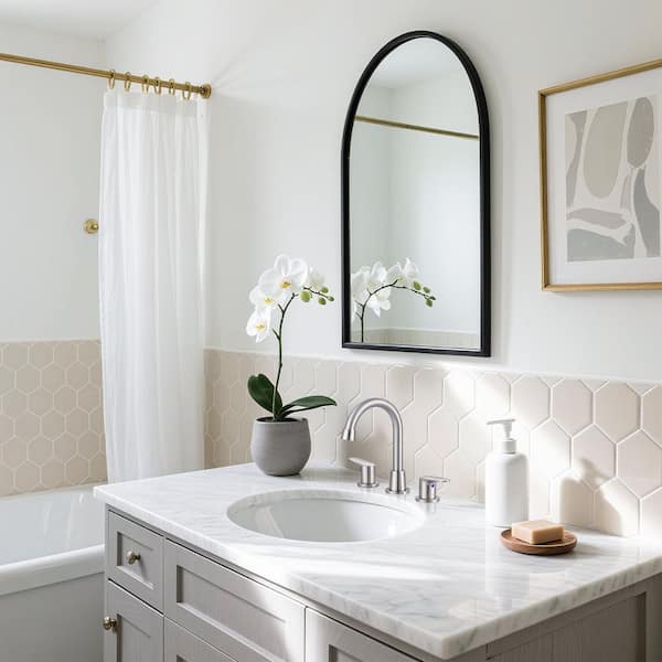 • Bathroom sink faucet fits 8-inch wide three-hole bathroom sinks