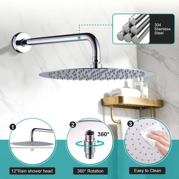 9-Spray Patterns with 1.8 GPM 12 in. Wall Mount Bathroom Rain Fixed Shower Heads in Polished Chrome
