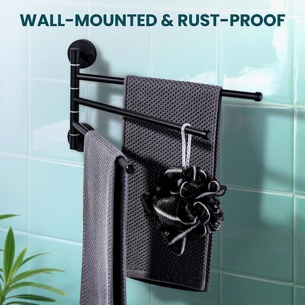 Round 13 in. Folding Wall Mounted Towel Rack in Matte Black