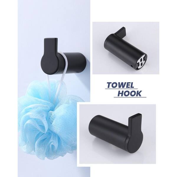 Round 6 -Piece Bath Hardware Set Towel/Robe Hook with Mounting Hardware in Matte Black