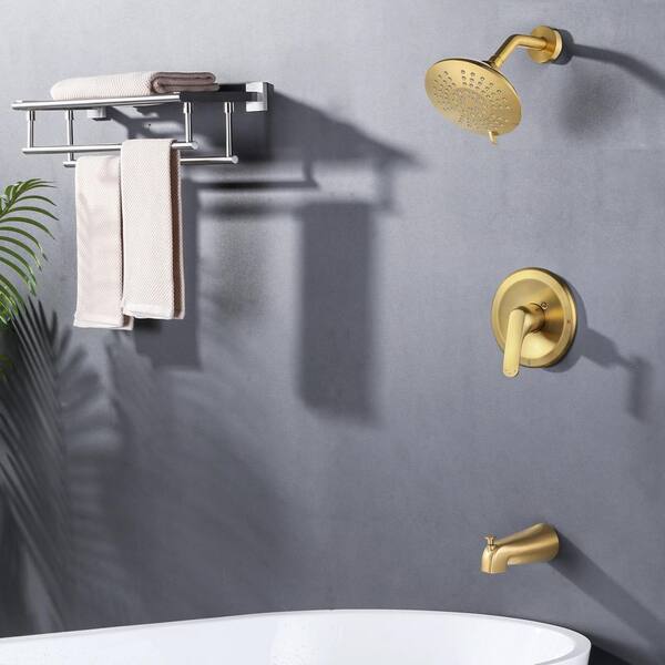 Round Single Handle 5 Patterns-Spray Shower Faucet 1.6 GPM with High Pressure Fixed Shower Head in Brushed Gold