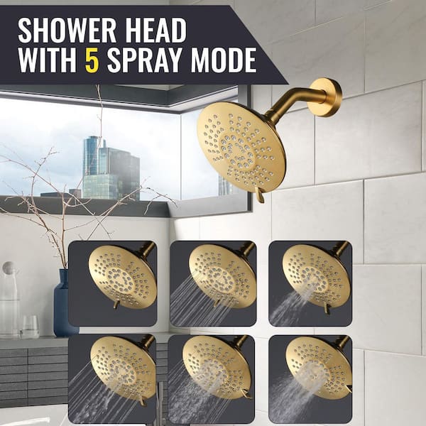 Single Handle 5-Spray Shower Faucet 1.8 GPM with 6 in. Adjustable Heads in Brushed Gold