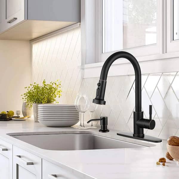 Single Handle Pull-Down Sprayer Kitchen Faucet Set Stainless Steel with Soap Dispenser in Oil Rubbed Bronze
