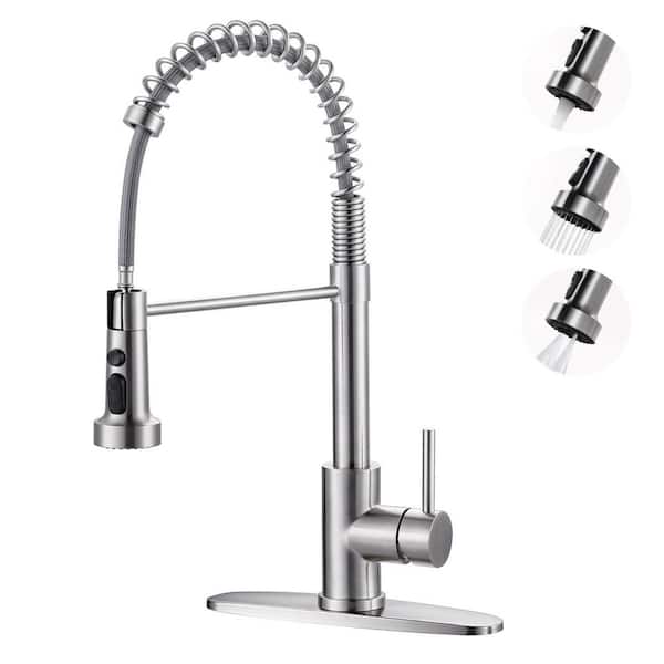 Single Handle Pull Down Sprayer Kitchen Faucet, Stainless Steel Spring Kitchen Sink Faucet in Brushed Nickel