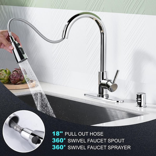 Single Handle Pull Down Sprayer Kitchen Faucet Stainless Steel with Deck Plate and Air Gap Kit in Chrome