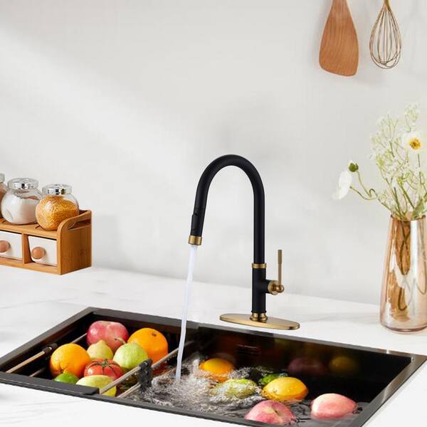 Single Handle Pull Down Sprayer Kitchen Faucet with Spray, Pull Out Spray in Black Gold