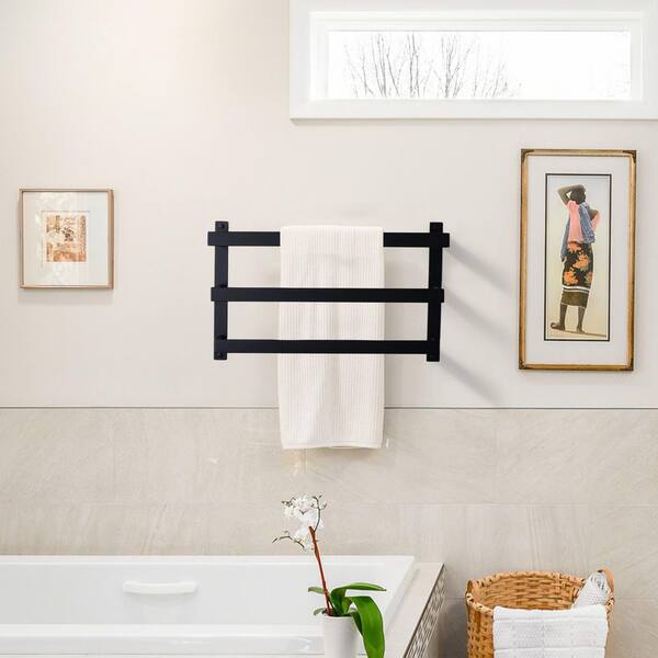 Square 20 in Wall Mounted Towel Rack Single Towel Holder in Matte Black