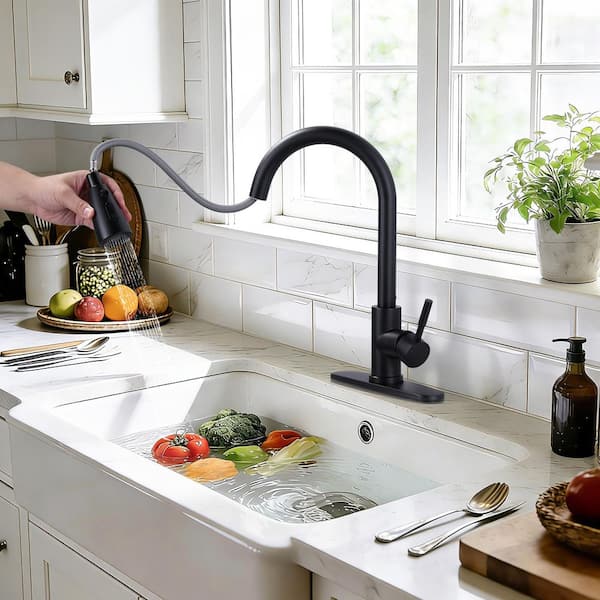 Touchless Sensor Single Handle Pull-Down Sprayer Kitchen Faucet in Matte Black