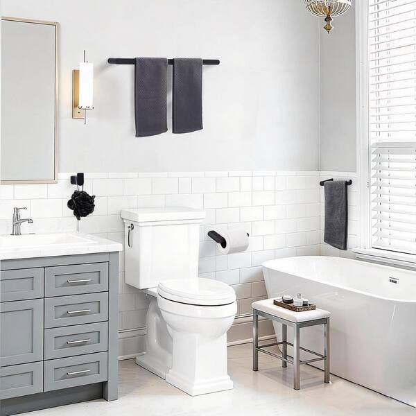 Wall Mounted 5-Piece Stainless Steel Bath Hardware Set, Bathroom Hardware Hanging Set in Matte Black