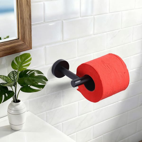 Wall Mounted Round Stainless-Steel Toilet Paper Holder in Matte Black