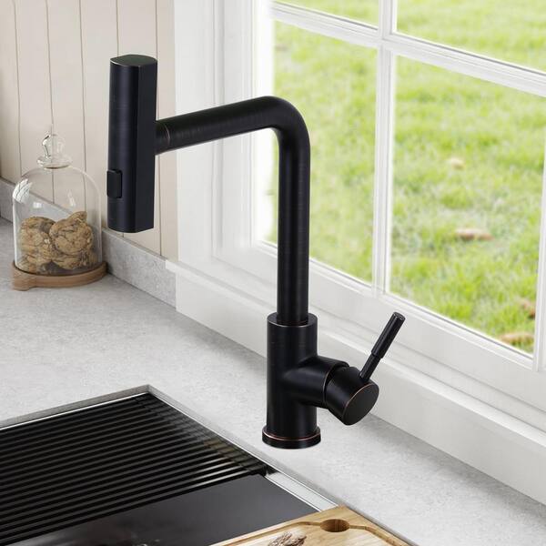 Waterfall 15.7 in. Single Handle Pull Down Sprayer Kitchen Faucet with 360° Spout Swivel in Oil Rubbed Bronze