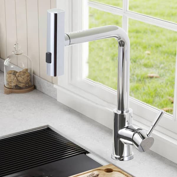 Waterfall Single Handle Pull Down Sprayer Kitchen Faucet, Kitchen Sink Faucet with 3-Mode Sprayer in Polished Chrome