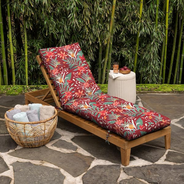 earthFIBER Outdoor Tufted Chaise Cushion, Rain-Proof, Cushion for Chaise Lounger Luau Red Tropical Floral