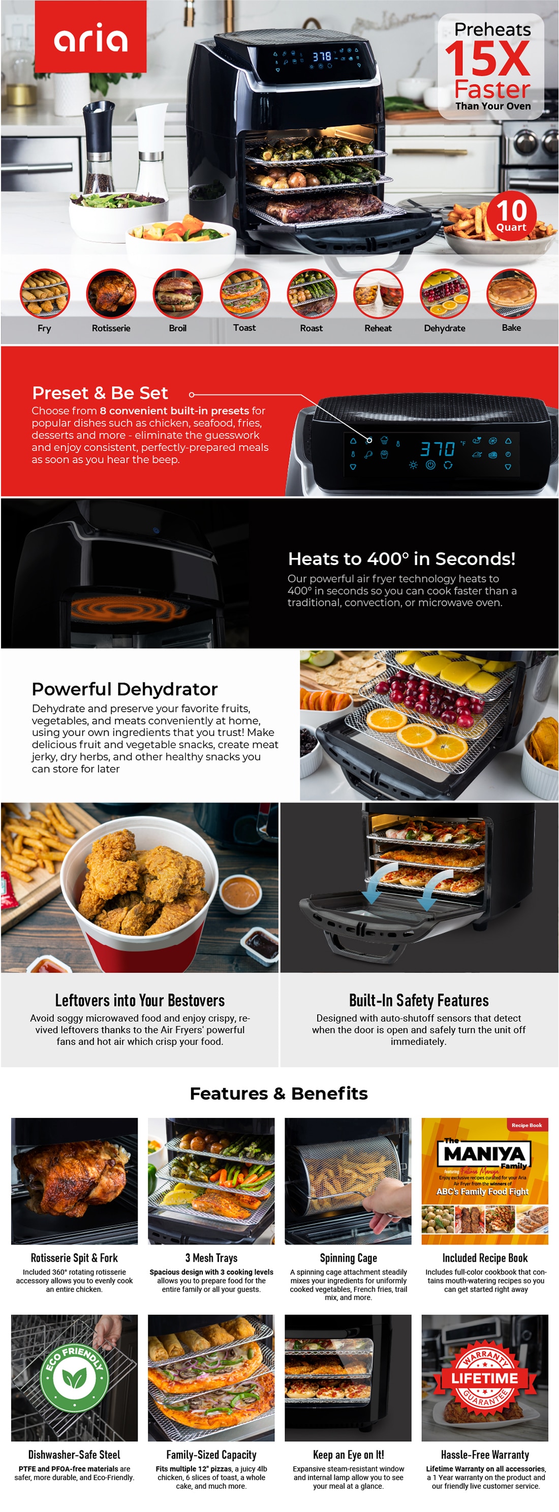 | Name | 7 Qt. Ceramic Family-Size Air Fryer with Accessories and Full Color Recipe Book | 10Qt White Air Fryer Oven with Rotating Rotisserie, Dehydration and Recipe Book | Aria 10 Qt. Black AirFryer with Recipe Book | 16.9 Qt. Red Electric Air Fryer with 8-Accessories |