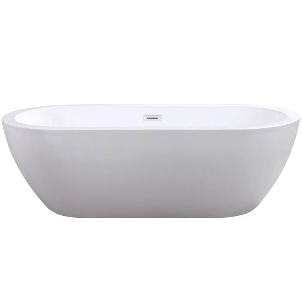 71 in. Acrylic Offset Drain Oval Flat Bottom Freestanding Bathtub in White