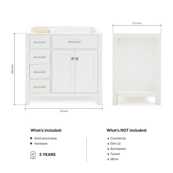 Bristol 36 in. W x 21.5 in. D x 34.5 in. H Freestanding Bath Vanity Cabinet without Top in White