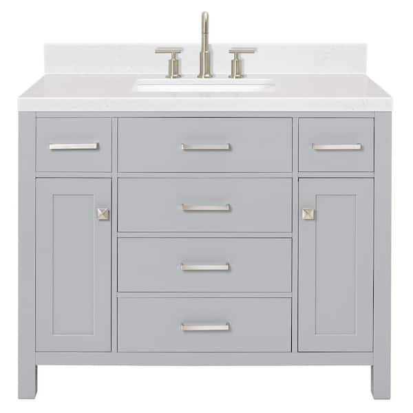 Bristol 42.25 in. W x 22 in. D x 36 in. H Single Sink Freestanding Bath Vanity in Gray with Carrara White Quartz Top