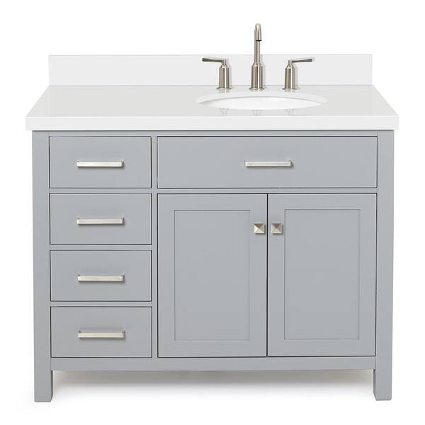 Bristol 42 in. W x 22 in. D x 36 in. H Freestanding Bath Vanity in Gray with Pure White Quartz Top