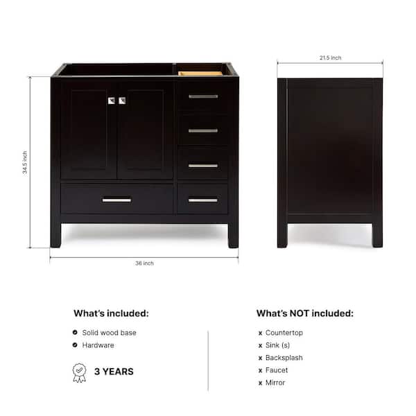 Cambridge 36 in. W x 21.5 in. D x 34.5 in. H Freestanding Bath Vanity Cabinet Only in Espresso