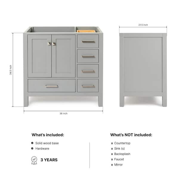 Cambridge 36 in. W x 21.5 in. D x 34.5 in. H Freestanding Bath Vanity Cabinet Only in Grey