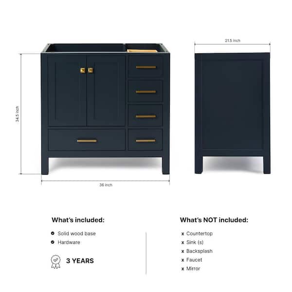 Cambridge 36 in. W x 21.5 in. D x 34.5 in. H Freestanding Bath Vanity Cabinet Only in Midnight Blue