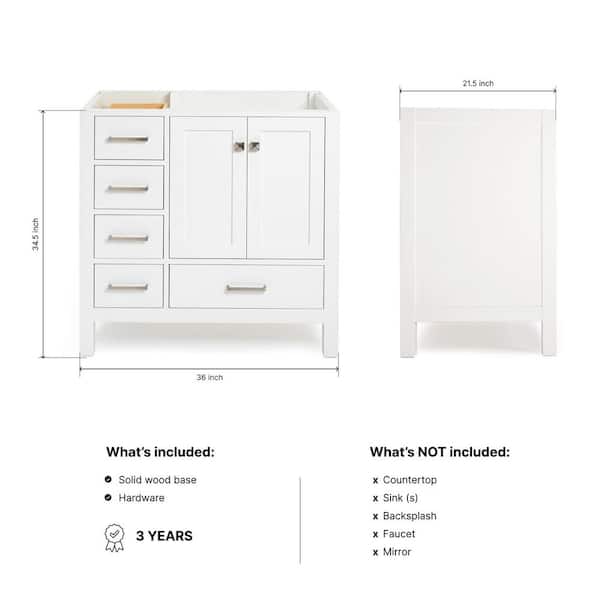 Cambridge 36 in. W x 21.5 in. D x 34.5 in. H Freestanding Bath Vanity Cabinet Only in White