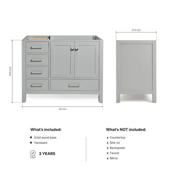 Cambridge 42 in. W x 21.5 in. D x 34.5 in. H Freestanding Bath Vanity Cabinet Only in Grey
