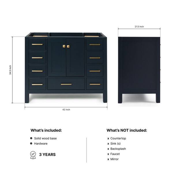 Cambridge 42 in. W x 21.5 in. D x 34.5 in. H Freestanding Bath Vanity Cabinet Only in Midnight Blue