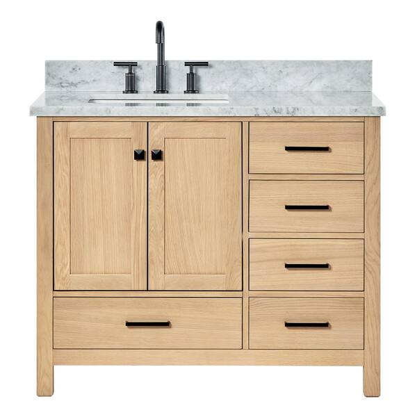 Cambridge 42 in. Single Sink Freestanding Bathroom Vanity in Oak with Carrara White Marble Top