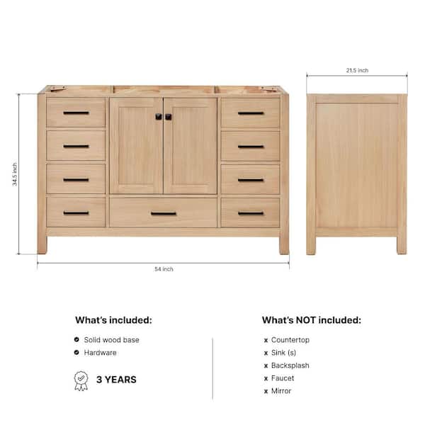 Cambridge 54 in. W x 21.5 in. D x 34.5 in. H Bath Vanity Cabinet without Top in Oak