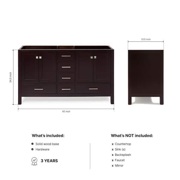 Cambridge 60 in. W x 21.5 in. D x 34.5 in. H Double Freestanding Bath Vanity Cabinet Only in Espresso