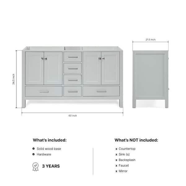 Cambridge 60 in. W x 21.5 in. D x 34.5 in. H Double Freestanding Bath Vanity Cabinet Only in Gray