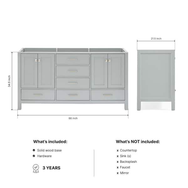 Cambridge 66 in. W x 21.5 in. D x 34.5 in. H Double Freestanding Bath Vanity Cabinet without Top in Gray