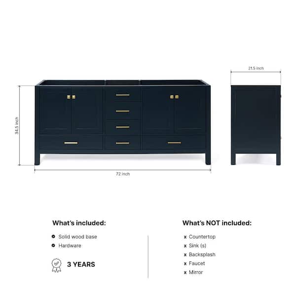 Cambridge 72 in. W x 21.5 in. D x 34.5 in. H Double Freestanding Bath Vanity Cabinet Only in Midnight Blue