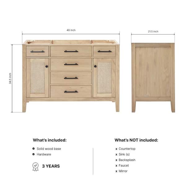 Camila 48 in. W x 21.5 in. D x 34.5 in. H Bath Vanity Cabinet without Top in White Oak