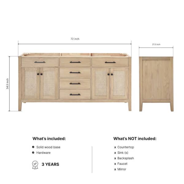 Camila 72 in. W x 21.5 in. D x 34.5 in. H Bath Vanity Cabinet without Top in White Oak
