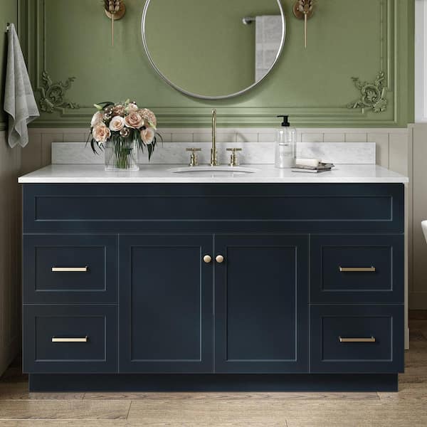 Hamlet 60 in. Single Sink Freestanding Bathroom Vanity in Midnight Blue with 0.75" Carrara White Marble Top