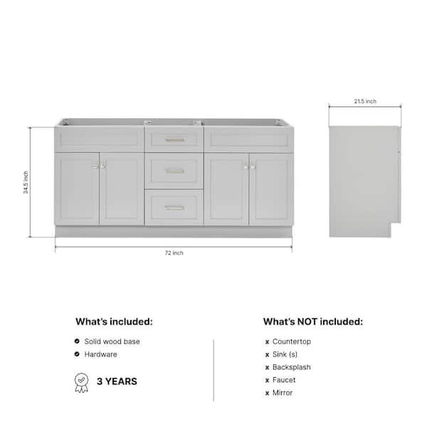Hamlet 72 in. W x 21.5 in. D x 34.5 in. H Double Freestanding Bath Vanity Cabinet without Top in Gray