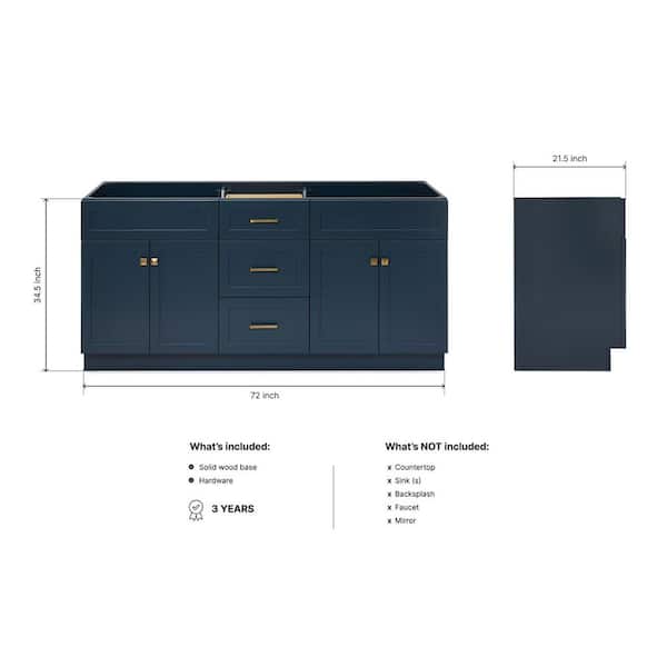 Hamlet 72 in. W x 21.5 in. D x 34.5 in. H Double Freestanding Bath Vanity Cabinet without Top in Midnight Blue