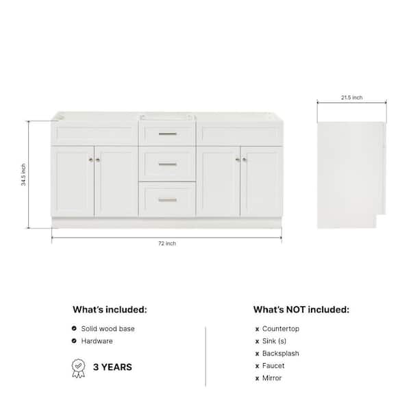 Hamlet 72 in. W x 21.5 in. D x 34.5 in. H Double Freestanding Bath Vanity Cabinet without Top in White