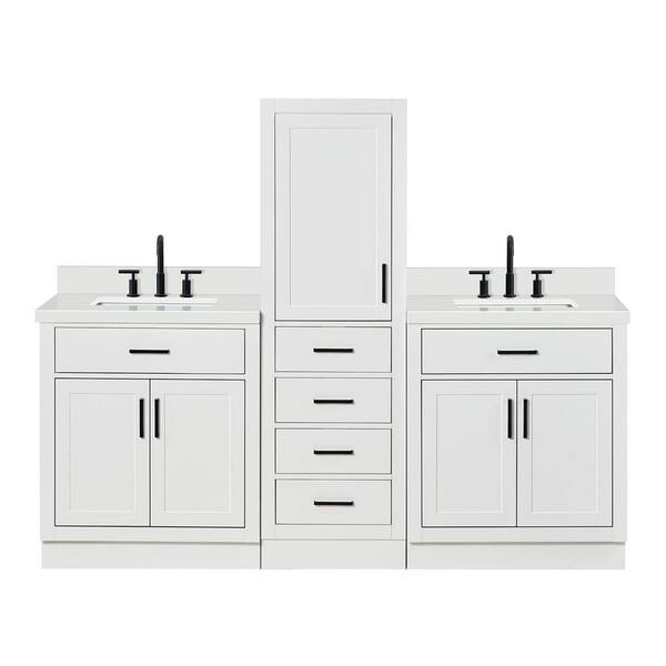 Hepburn 3-Piece 82 in. Wide Double Sink Bath Vanity And Linen Cabinet Set In White With Pure White Quartz Top