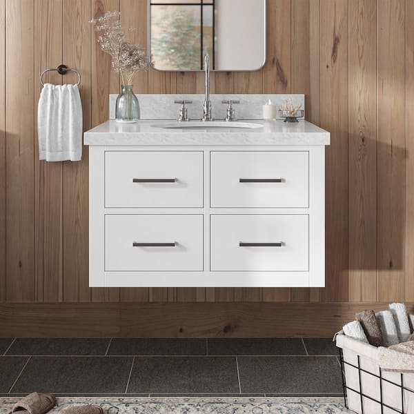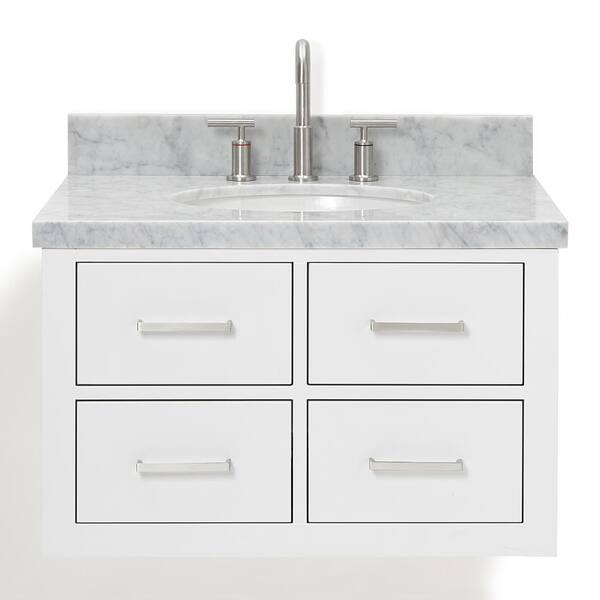 Hutton 30 in. W x 22 in. D x 19.6 in. H Bath Vanity in White with Carrara White Marble Top