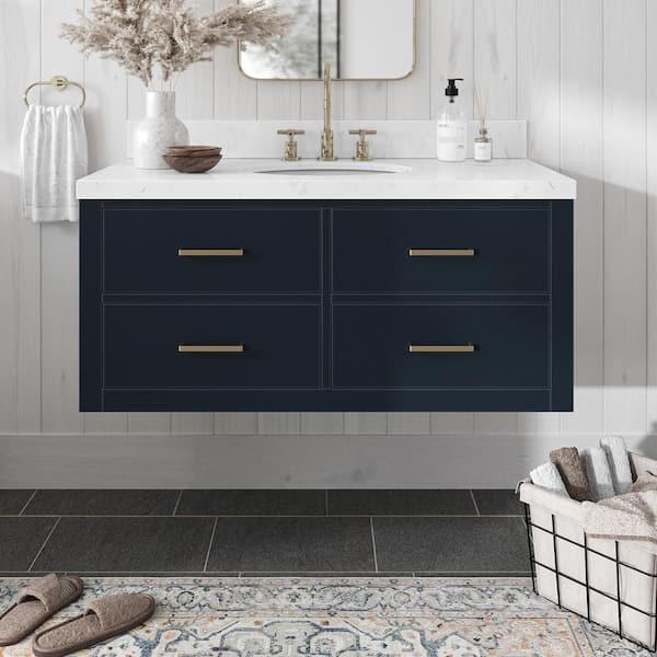 Hutton 42.25 in. W x 22 in. D x 19.6 in. H Single Sink Freestanding Bath Vanity in Midnight Blue with Carrara Quartz Top