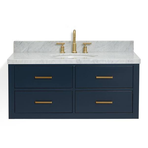 Hutton 43 in. W x 22 in. D x 19.6 in. H Bath Vanity in Midnight Blue with Carrara White Marble Top