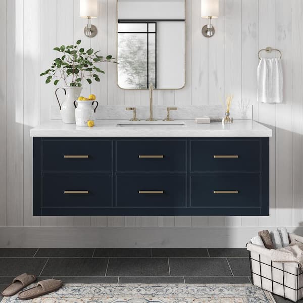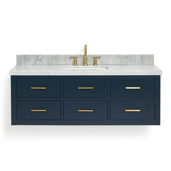 Hutton 55 in. W x 22 in. D x 19.6 in. H Bath Vanity in Midnight Blue with Carrara White Marble Top